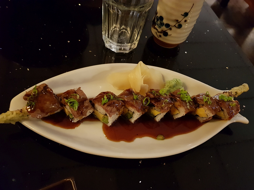 Sushi (mit Rindfleisch) und Sashimi