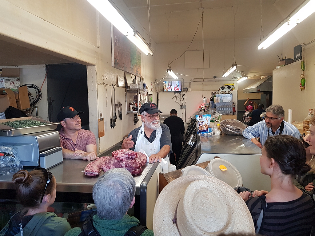 Nächster Halt war eine Fleischerei. Eine besondere, denn der Inhaber arbeitet seit 55 Jahren hier und ist 75 Jahre alt. Und er könnte jetzt Millionär sein, wenn er nicht bereitwillig einem der größten Fleischkonzerne der Welt das Geheimnis seiner Cuts (also Schnitte) verraten hätte, die das heute als „Flap-Cut“ weltweit verkaufen.