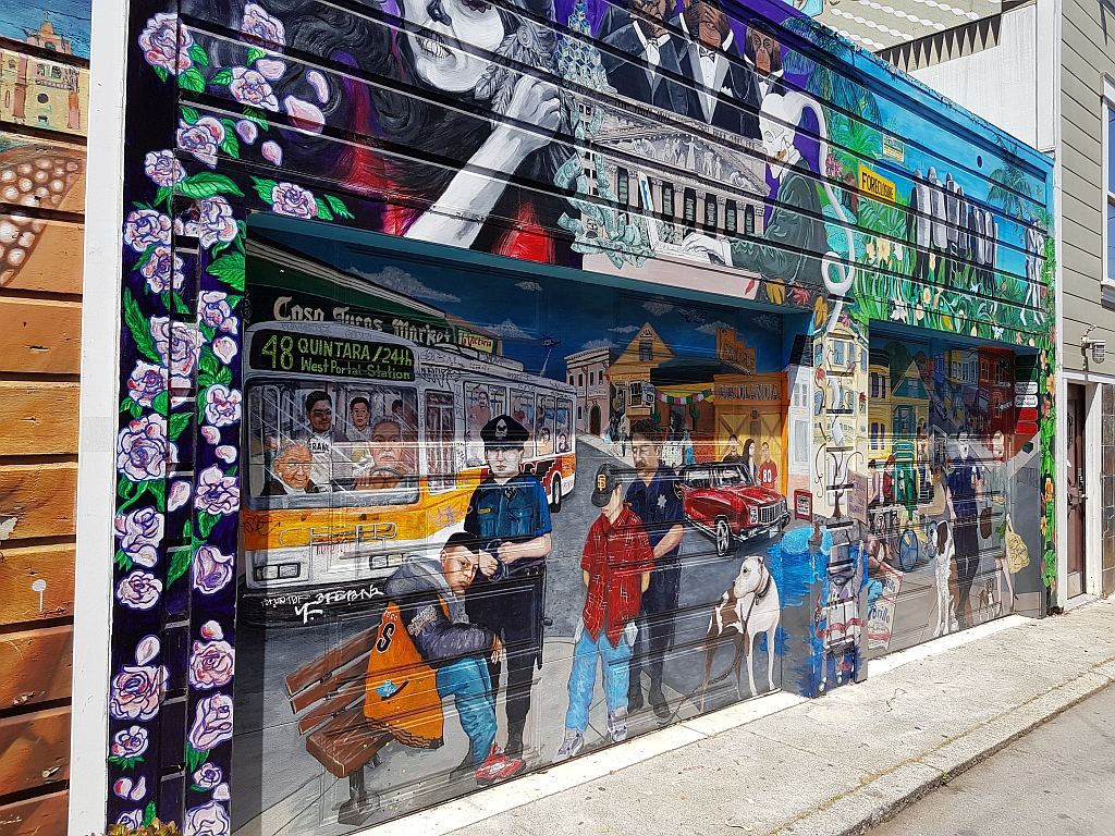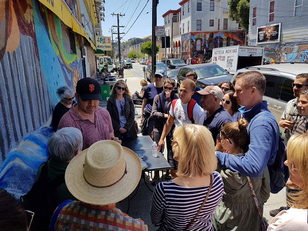 Gebucht hatten wir eine Tour durch den Stadtteil „Misson District“ oder auch oft nur „The Misson“ genannt. Dieser Stadtteil ist einer der ältesten noch erhaltenen Stadtteile von San Francisco und ist heute vorwiegend von lateinamerikanischen Einwanderern und Leuten mit Wurzeln aus dieser Region bewohnt. Und soll einen ganz eigenen Flair haben.