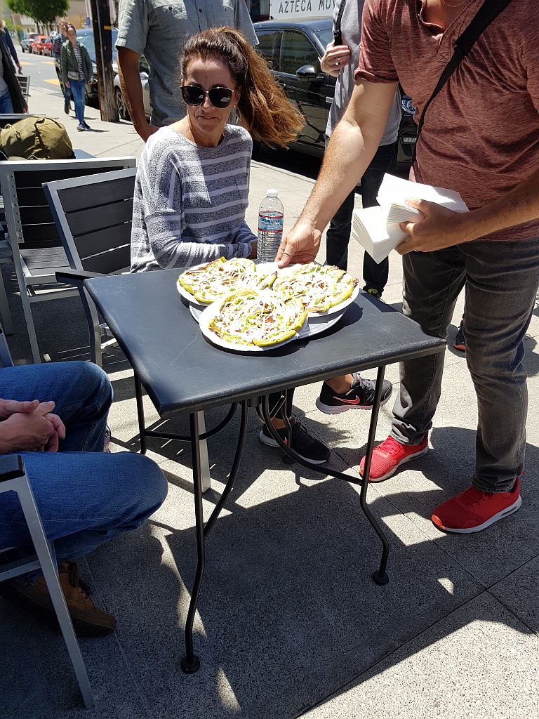 Treffpunkt was ein Restaurant an einer Ecke, wo auch eine BART-Station sein sollte. Von uns aus fuhr ein Bus direkt dorthin, da wir allerdings unsere Clipper-Cards aufladen wollten (uns das geht nur beispielsweise an den Automaten an einer BART-Station), sind wir was früher dort angekommen.