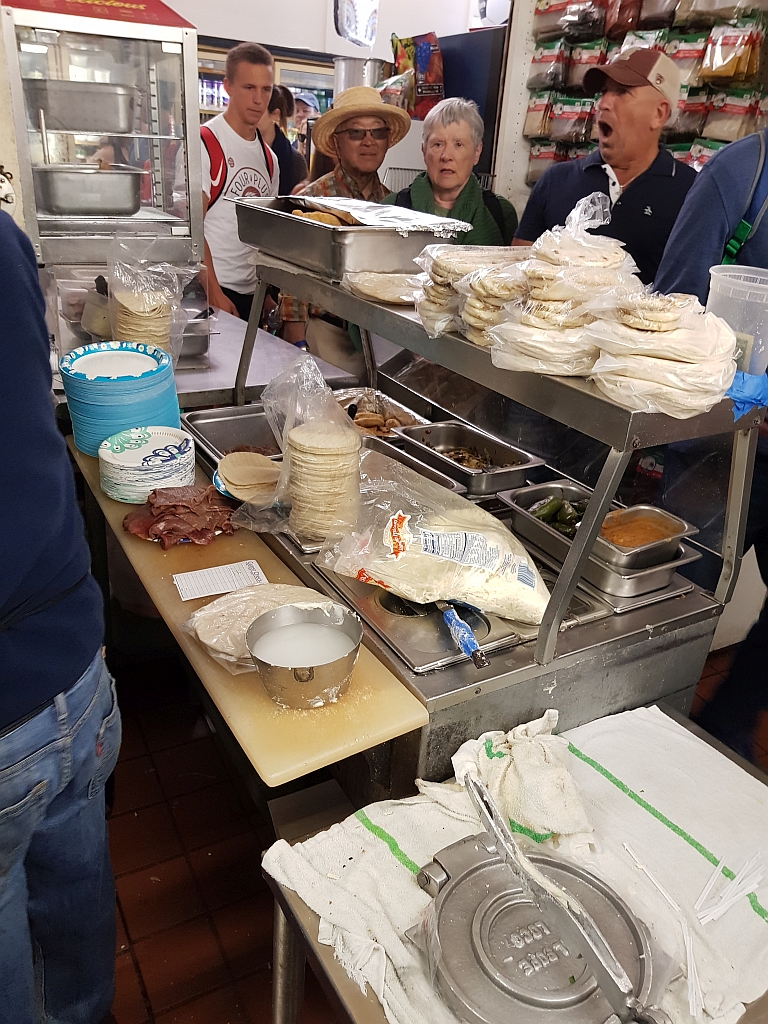 Grandioses Fleisch in einem Taco. Und für diejenigen, die die Tour mit Chris auch machen: Wenn der was von „scharf“ sagt, dann meint der das so!