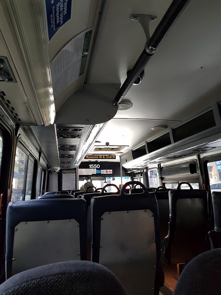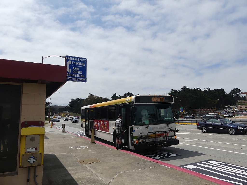 Der Bus einer anderen Gesellschaft war eine Art Shuttle-Bus zwischen der Innenstadt und den Ortschaften nördlich der Golden Gate Bridge. Und an der Haltestelle war wieder ein seltsamer, alter Mann, der sich die ganze Zeit mit seinem Spiegelbild unterhielt. Glücklicherweise stieg er in einen anderen Bus ein …