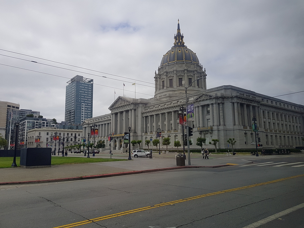 Die etwa 30 Minuten Fahrt waren ganz schön, denn einerseits fuhren wir durch noch unbekannte Stadtteile von San Francisco und z.B. am sehr schönen Rathaus vorbei.