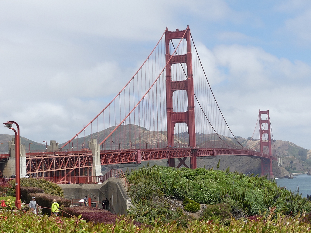 Nun, gestern war ja auch die ursprüngliche Idee mit dem Fahrrad über die Golden Gate Bridge zu fahren. Bei dem schlechten Wetter wollten wir aber nicht auf gut Glück ein Rad mieten, sondern wir sind mit einem Bus zur Golden Gate Toll Bridge gefahren, von wo aus man entweder auf die Brücke gehen kann oder sie sich eben anschauen und wieder umdrehen kann.