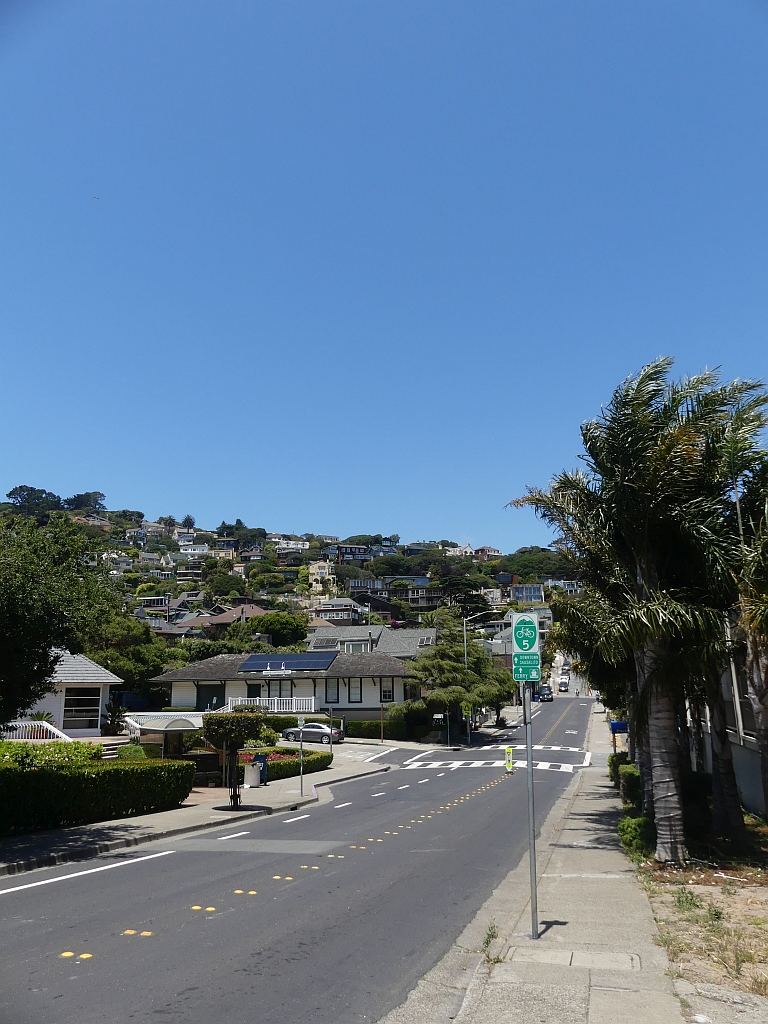 Wir haben uns dem recht schnell entzogen und den Weg weiter nach Sausalito gesucht. Von dort aus fahren nämlich Fähren wieder nach San Francisco. Also weiter hier quasi geradeaus entlang.