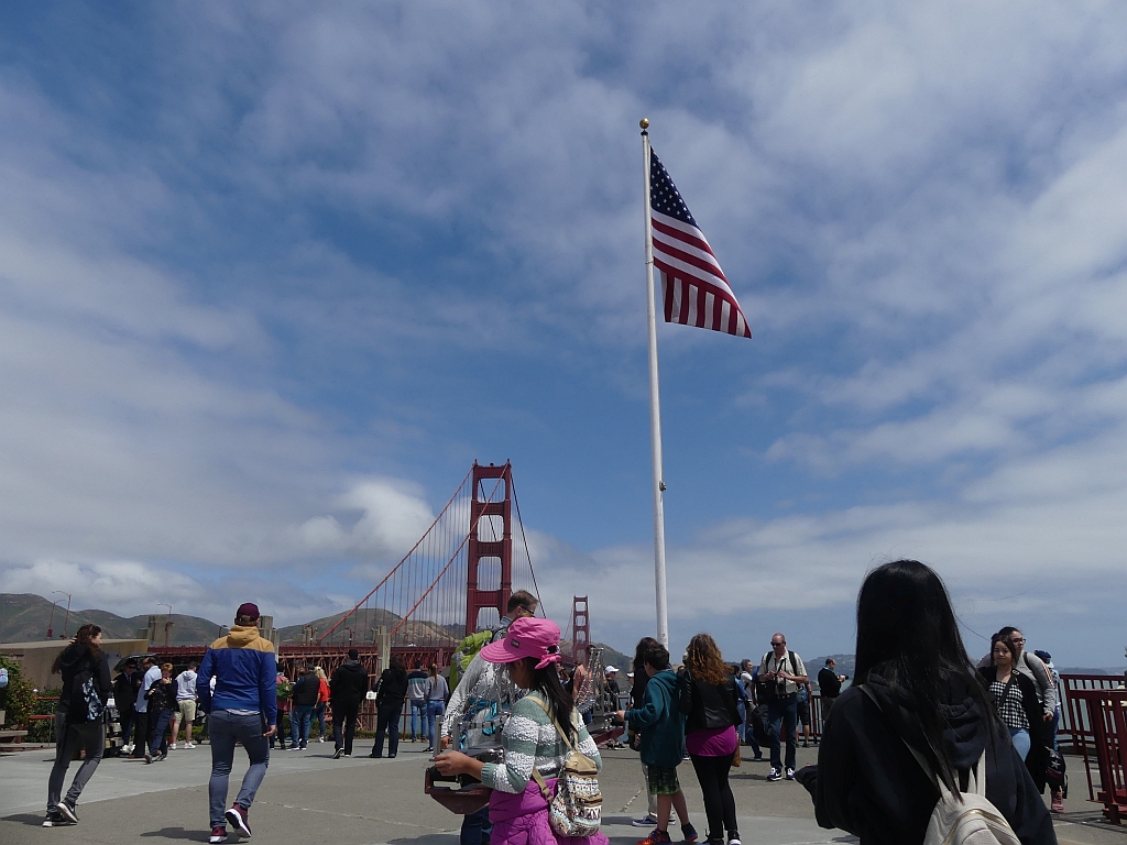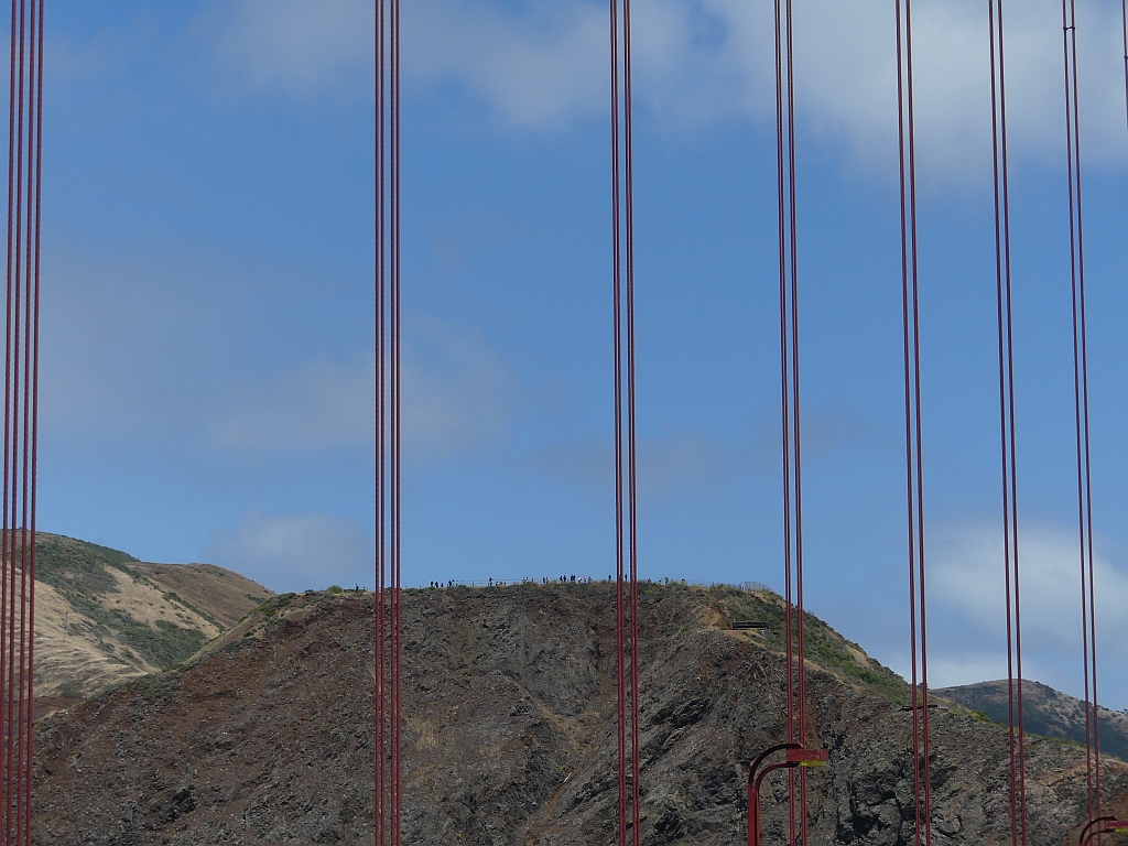 Einen schönen Blick auf die Brücke hatten wir ja schon. Was aber (und hier wäre ein Rad sinnvoll gewesen) auch schön sein soll, ist der Blick von den nahen Marin Headlands auf die Brücke. Selbst von der Brücke konnte man die vielen Menschen sehen, die sich dort die Brücke und das Panorama angeschaut haben.