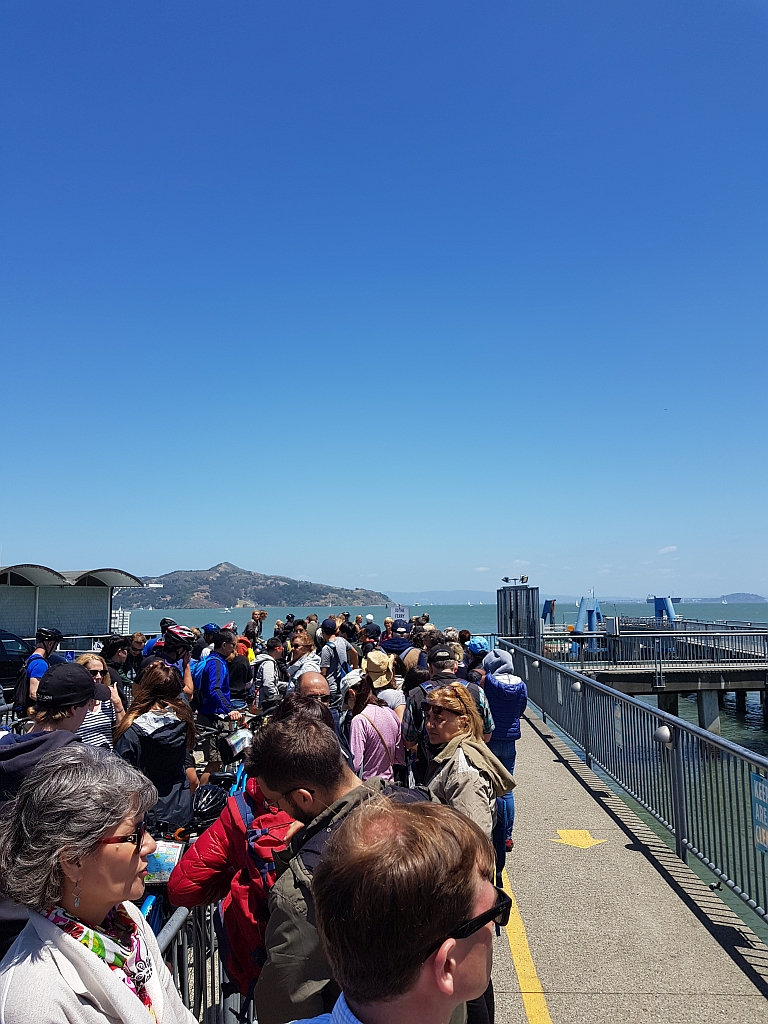 Der Rückweg von Sausalito haben wir mit der Fähre gemacht, eine Variante, die vor allem von den vielen Fahrradfahrern in Anspruch genommen wird, die mit einem geliehenen Rad über die Golden Gate Bridge fahren und dann den Rückweg über die Bucht von San Francisco wählen.