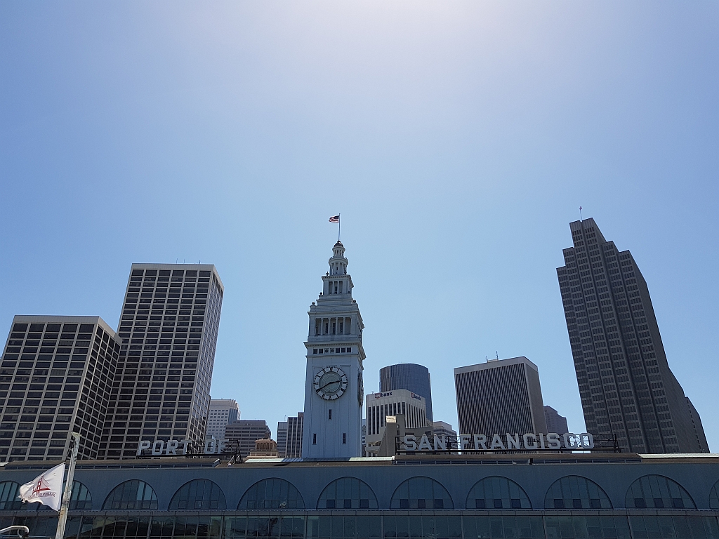 Das Schiff legte auf jeden Fall pünktlich ab und fuhr uns quer über die Bucht an Alcatraz vorbei zum Pier 1. Es gibt auch eine andere Fähre zum Pier 29 oder da in der Nähe.