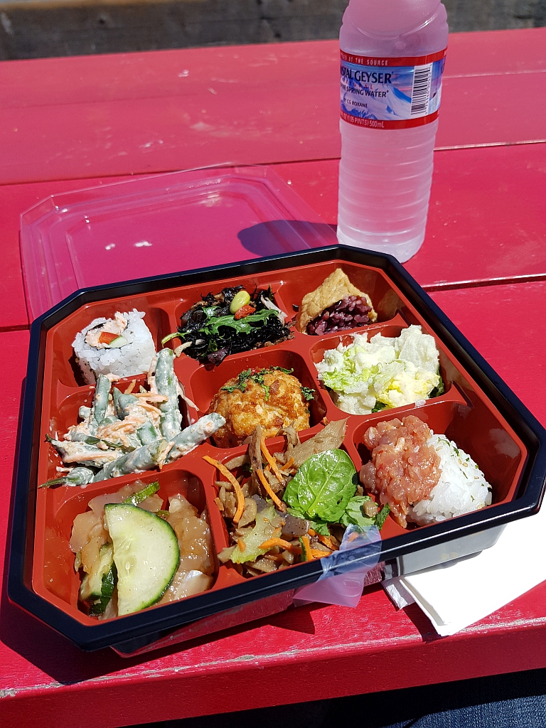 Für den Abend hatten wir uns ein schönes Abendessen im Roka Akor, einem der besten japanisch-amerikanischen Restaurants in San Francisco. Allerdings hatten wir jetzt Hunger und der Abend war noch lange hin. Glücklicherweise gibt es hier halt viele gute Restaurants oder kleine Imbisse. Und am Pier war eines davon: Ein kleiner japanischer Laden, der Bento-Boxen verkauft.
