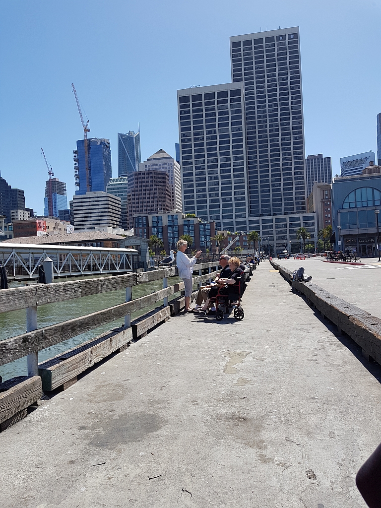 Am Pier waren viele Leute und auch viele komische Leute. Neben uns zum Beispiel ein älteres Paar, was versucht hat, ein Foto bzw. ein Selfie mit der dort sitzenden Möve zu machen.