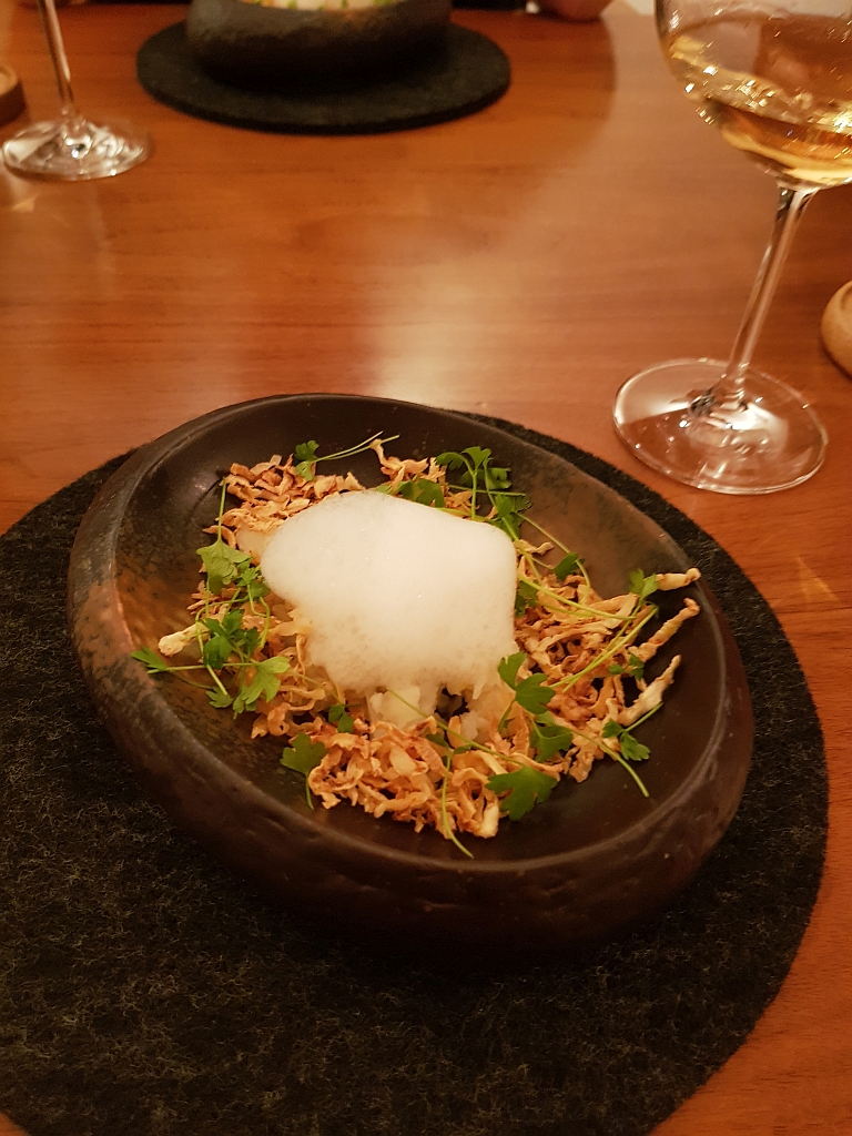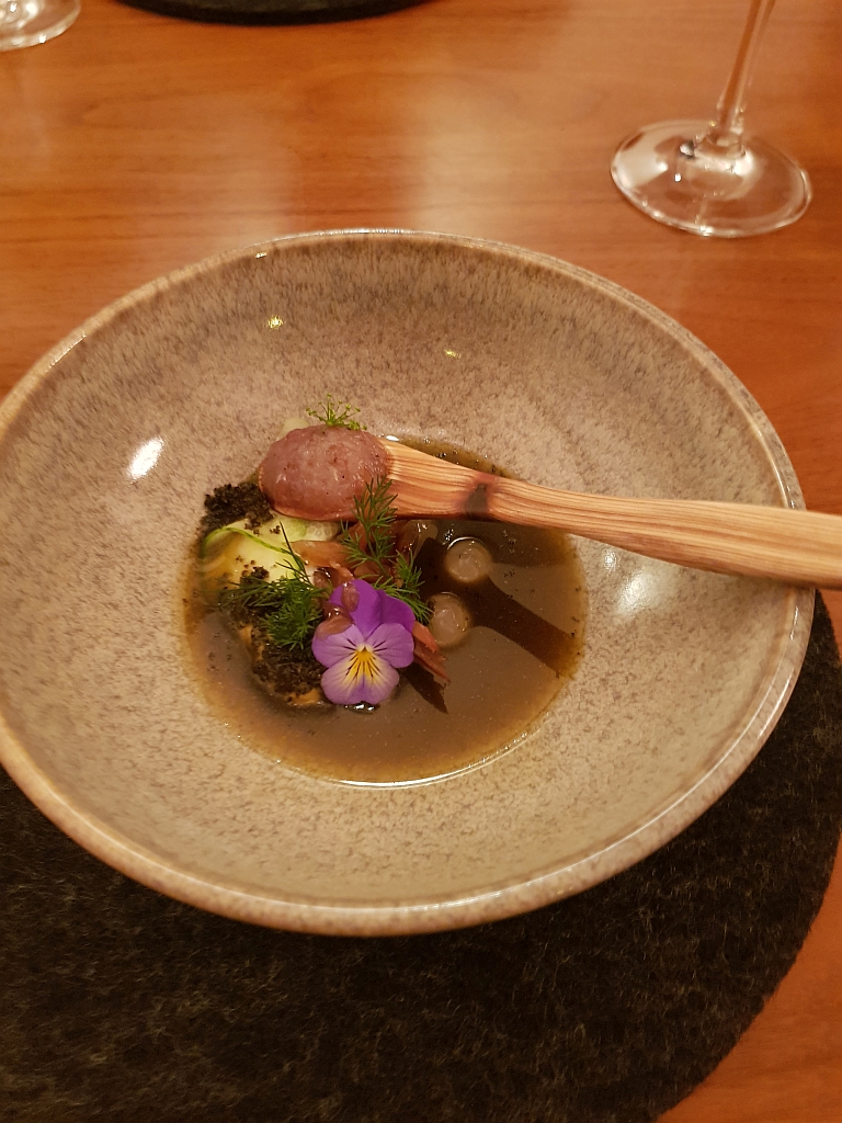Gut war auf jeden Fall auch der „Guide“, auch wenn der Kellner jeden Gang sehr genau und ausfühlich erklärt hat. Und zu jedem Gang auch die Idee dahinter versucht hat zu erklären. Es war ein sehr unterhaltsamer Abend und das nicht nur wegen der Gerichte.