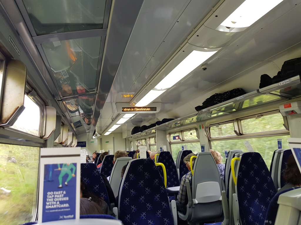Da der Zug aus Glasgow kam und weiter nach Mallaig fahren würde, waren schon einige Leute im Zug und viele Plätze belegt.
