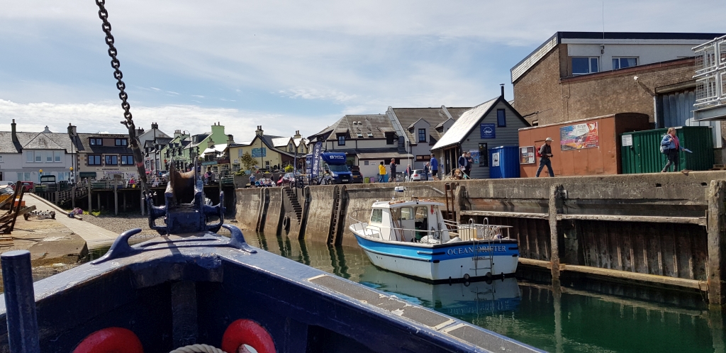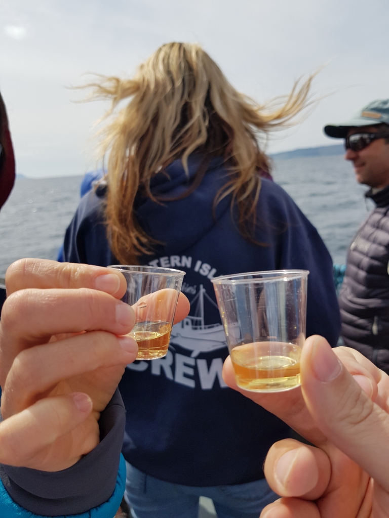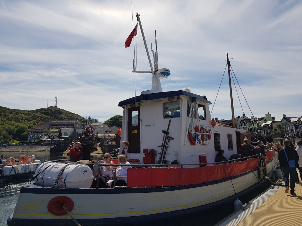 Ruhig war deswegen nett, weil die Dame von Western Isles Cruises, die quasi die „Gästebetreuung“ übernommen hat, meinte, dass am letzten Wochenende so ein Seegang war, dass sie das erste Mal in ihrem Leben seekrank geworden ist. Und sie ist die Tochter des Kapitäns und fährt ihr ganzes Leben schon hier herum.