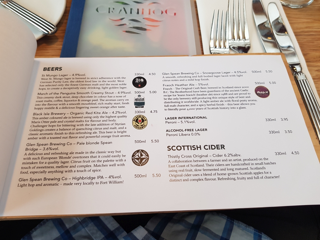 In Fort William ging es dann zum Restaurant Crannog, welches wir etwas zu früh erreichten. Unser Tisch war aber schon frei, also hinsetzen.