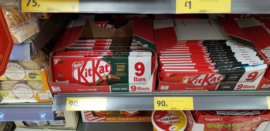 … eine Minz-Variante von KitKat einzukaufen. Die, wo dieser Bericht geschrieben wird (Anfang August), übrigens immer noch im Kühlschrank liegen. Zumindest 2 Riegel …