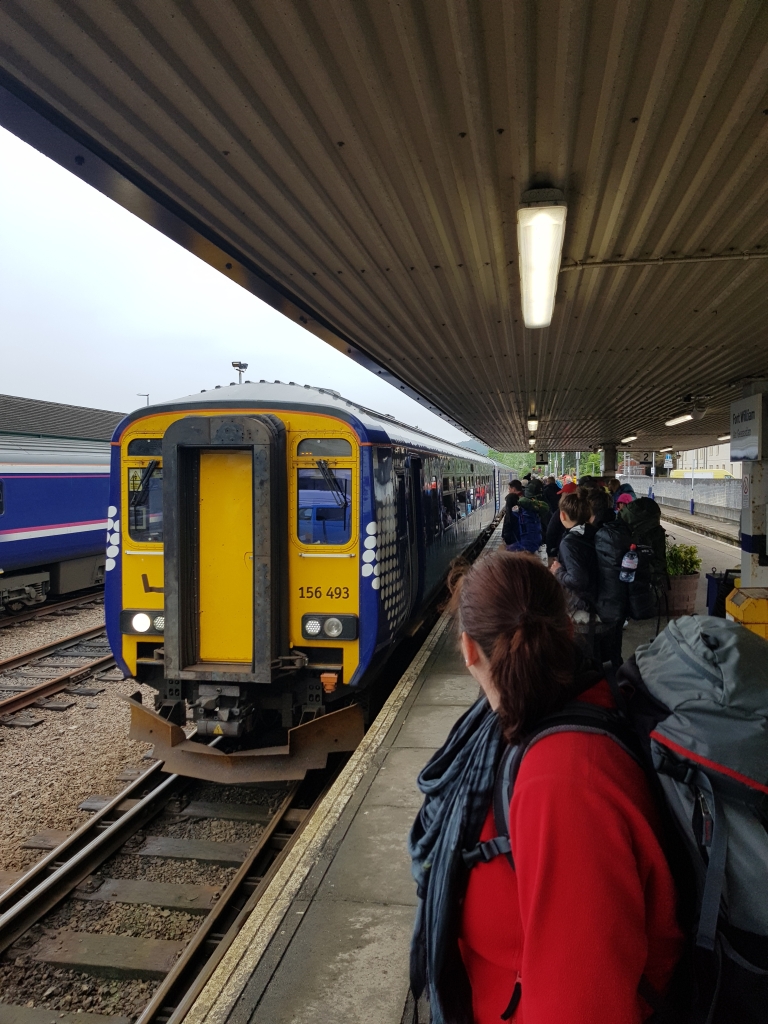 Nach eine weiteren herzhaften Frühstück hat uns unser Host ein Großraumtaxi gerufen, mit dem wir dann zum Bahnhof gefahren wurden. Was in Fort William nicht ganz so einfach ist, denn viele Taxen werden z.B. als Schulbus-Ersatz verwendet, da es gerade bei den kleinen Siedlungen außerhalb keinen Busverkehr mehr gibt. Wir hatten aber Glück. Und außerdem ein schlechtes Zeitgefühl, denn wir waren viel zu früh am Bahnhof.