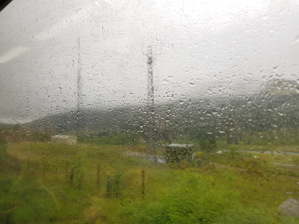 Die Landschaft dagegen war durch den Regen etwas schlechter wahr zu nehmen. Aber auch so erkannte man vieles wieder. Zum Beispiel Rannoch Moor oder Bridge of Orchy.