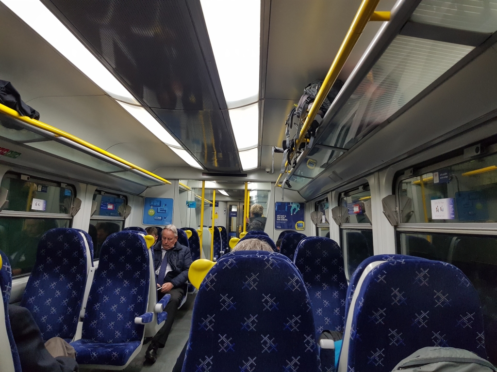Dieser Zug war eine der modernen Züge im Pendelverkehr zwischen den Metropolen Schottlands. Was auch bedeutet, dass es kleine Gepäckfächer gab, sodass man dafür die Sitzplätze verwenden musste.