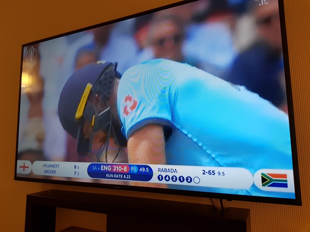 In Edinburgh Park ging es dann direkt ins Hotel, aufwärmen und etwas ausruhen. Dabei im TV Cricket WM schauen.