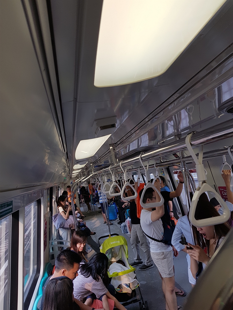 Chengi Airport liegt etwas außerhalb der Innenstadt, daher haben wir uns entschieden, mit der MRT, der U-Bahn in Singapur, zu fahren. Unser Hotel, das Swissotel Stamford, liegt direkt über der Bahnstation „City Hall“ und so versprachen wir uns einen einfachen Weg ins Hotel.