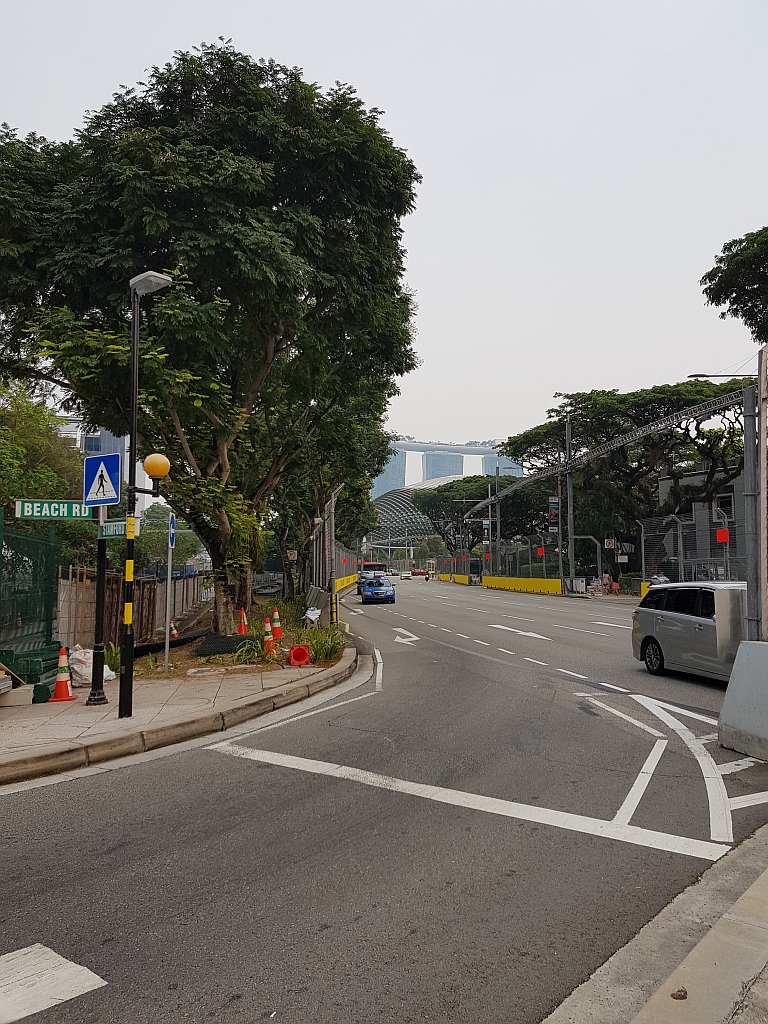 Am nächsten Wochenende ist in Singapur das Formel 1 Rennen. Was ja ein Stadtrennen ist. Weswegen jetzt schon die ganzen Barrieren und Absperrungen aufgebaut sind. Weswegen man teilweise nicht mehr über die Strasse gehen kann.