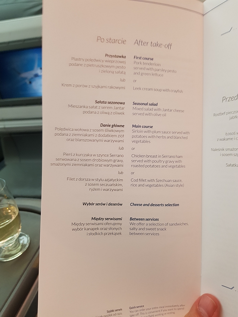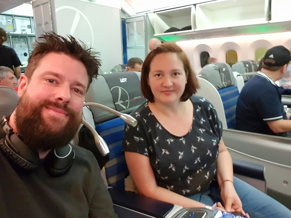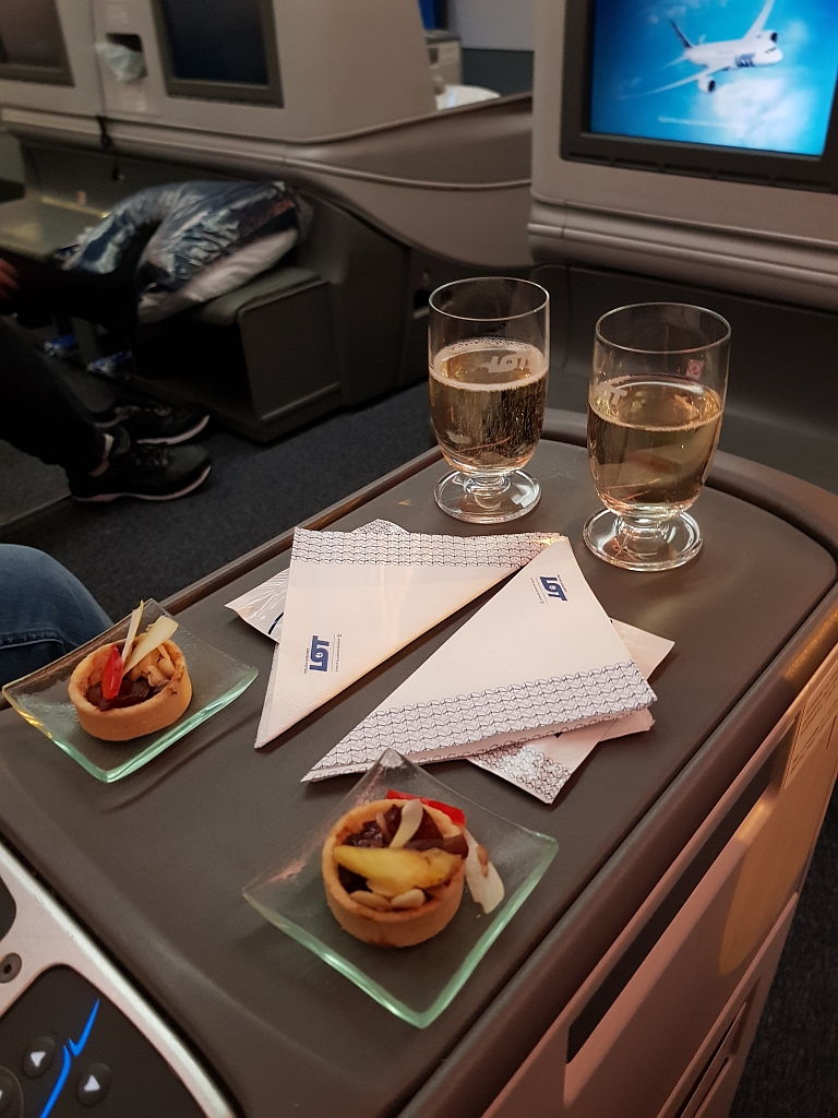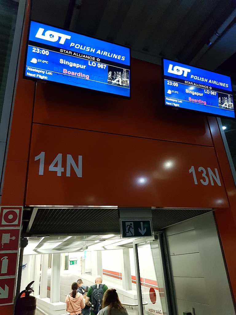 Waren dann zwar nur 10, aber: Einmal möchten wir ein pünktliches Boarding erleben. Also kein „Deutsche Bahn“-Pünktlich, sondern ein „Auf die Minute wie in Japan die Shinkansen“-Pünktlich. Aber egal, das Boarding ging für uns recht schnell, denn LOT achtet darauf, dass tatsächlich nur diejenigen, die Business Class oder Star Alliance Gold haben, als erstes ins Flugzeug kommen. Für uns ganz angenehm.