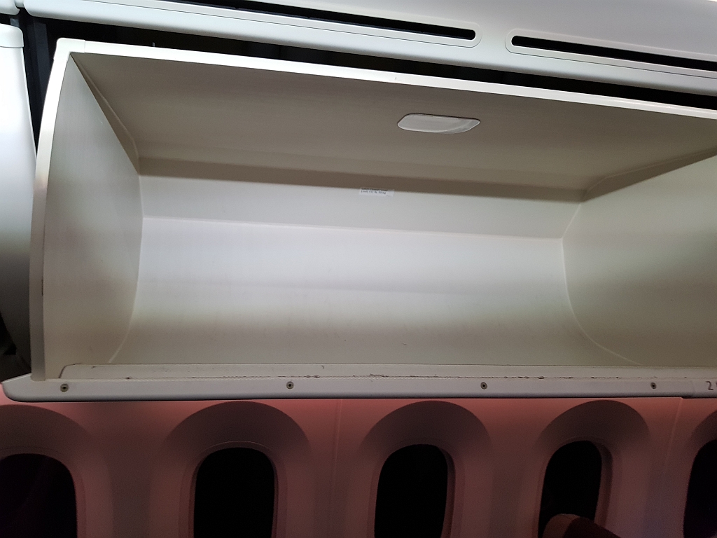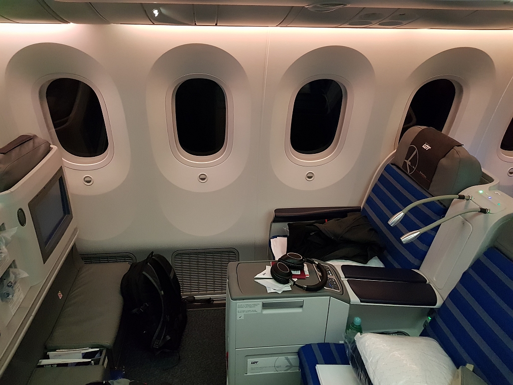 Unser Heim für die nächsten 11 Stunden. Vorteil hier (neben dem ganzen anderen Zeug wie Sitz, Essen, TV, etc.): Ein Fach fürs Handgepäck, in das man fast noch einen Menschen reinlegen könnte.