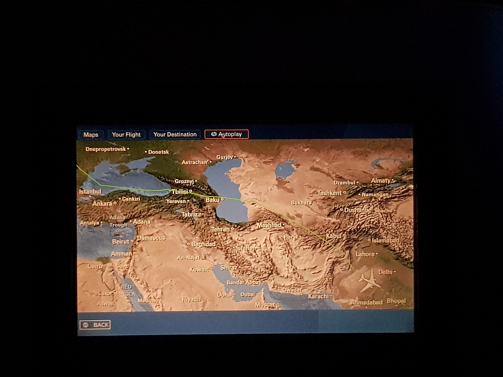 Leichteste Übung für Jens. Einschlafen irgendwann über der Türkel, Afghanistan und Pakistan verschlafen und mitten über Indien wieder aufgewacht.