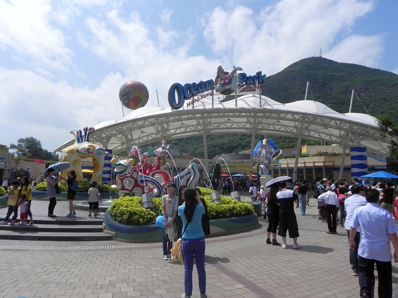 Zum Park kommt man mit den Bus hin. Anscheinend wollte heute halb Hong Kong zum Ocean Park – an der Haltestelle „Admiralty„, wo die Busline zum Ocean Park abfährt, standen ca. 40 Doppelstockbusse, in die die Massen von Menschen getrieben wurden.