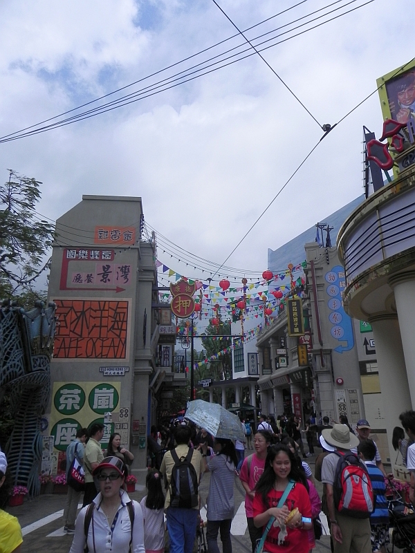 Allgemein zu dem Park: Die Pandas waren schon schön anzusehen. Der Rest des Parks ist aber recht kitschig gemacht und voller unterschiedlicher Fahrgeschäfte (Wildwasserbahn neben alter Hong Kong Strasse neben Achterbahn neben Goldfischen neben Wasserfontänen …).