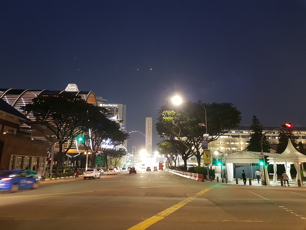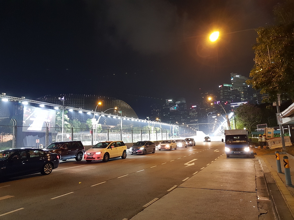 Nachts werden übrigens schon die Lampen für das Formel 1 Rennen ausprobiert. Und erhellen die Nacht schon deutlich.